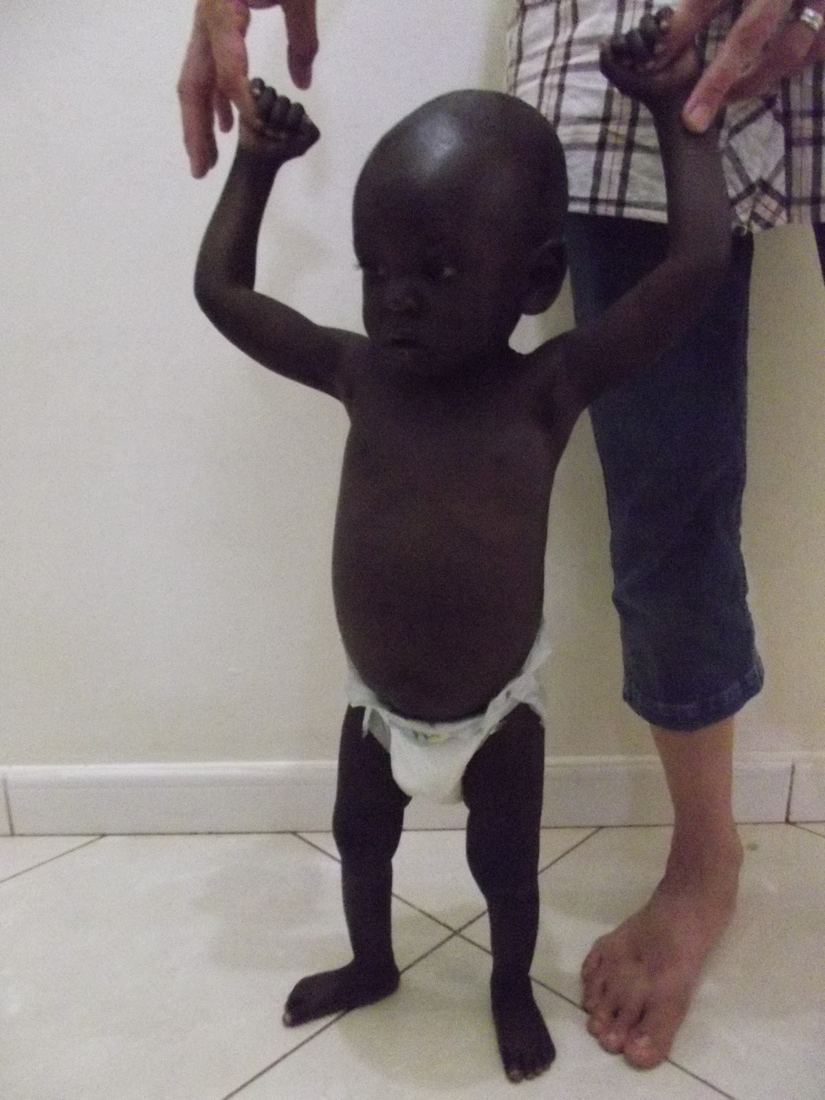 What a change one and a half weeks can make! His name has been changed to Emmanuel meaning "God with us" and you would hardly recognize him! Pictured to the right, you can see he is standing on the side of a chair. He has been playing with the children, even smiling at them and is even standing up in the middle of the floor by himself. He will crawl to you from across the room when called and keeps eating and growing! Truly, God has shown Himself mighty in this small one and His name is being glorified through his continued improvement.